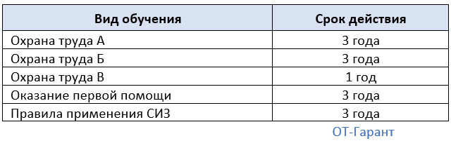 Сроки дейтвия обучений