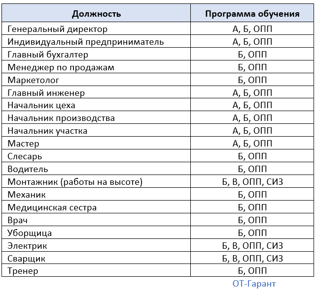 п. 46 Приказа. Существуют следующие программы обучения по охране труда: